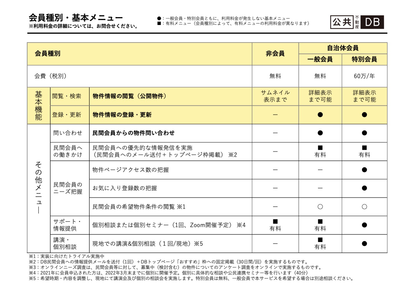 自治体会員は、無料で基本サービスのみ利用できる一般会員と、付加メニューの優遇がある特別会員の2つの種別があります。